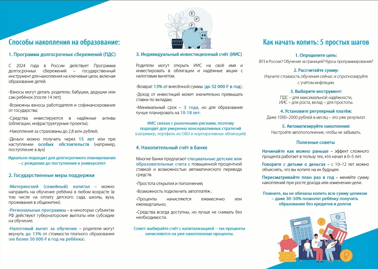 Сегодня качественное обучение может стоить сотни тысяч, а иногда и миллионы рублей. Начав откладывать с первых лет жизни ребёнка, вы значительно снижаете финансовую нагрузку в будущем и даёте ребенку больше возможностей