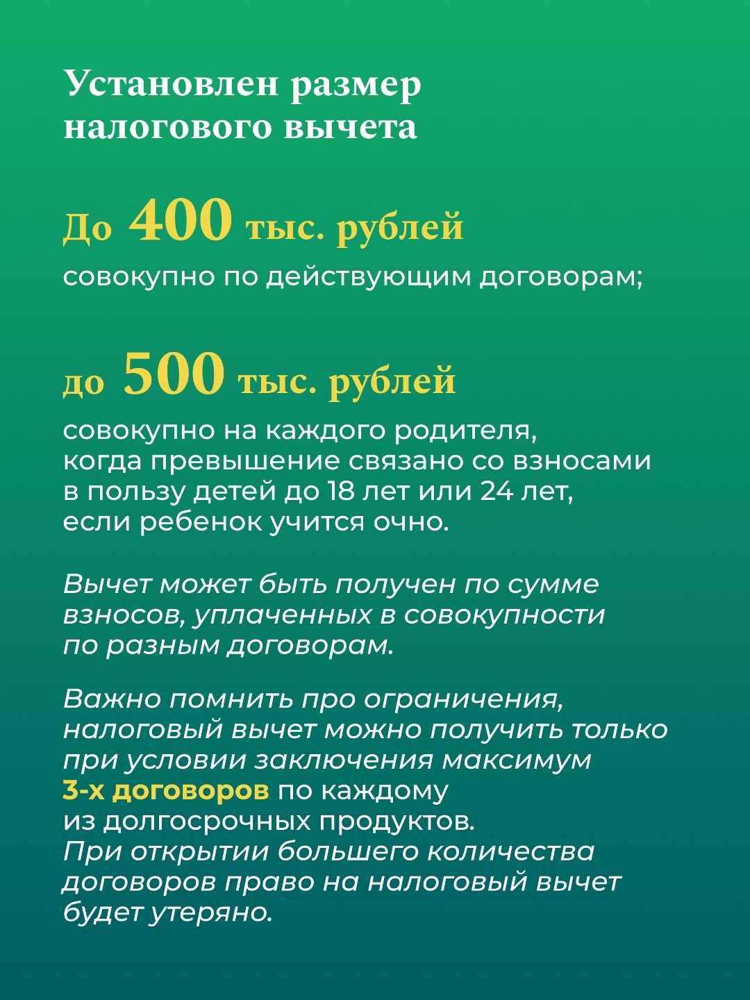- о размерах предельной суммы налогового вычета по долгосрочным продуктам;